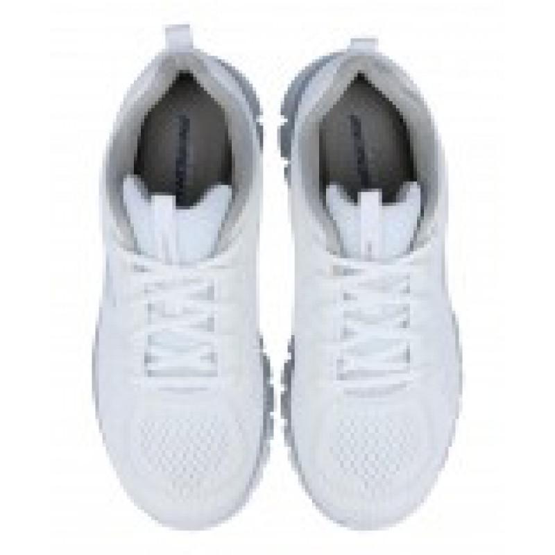 Deportivos de malla para mujer en color blanco, con cordones, suela de goma de 2 cm ligera y flexible, exterior textil e interior forro y planta textil.