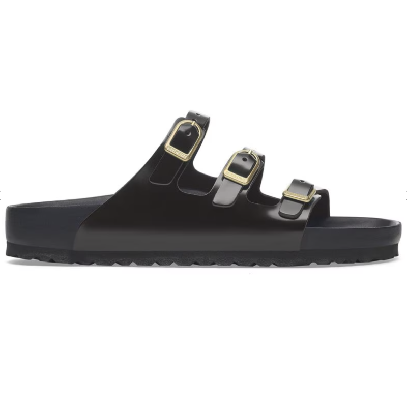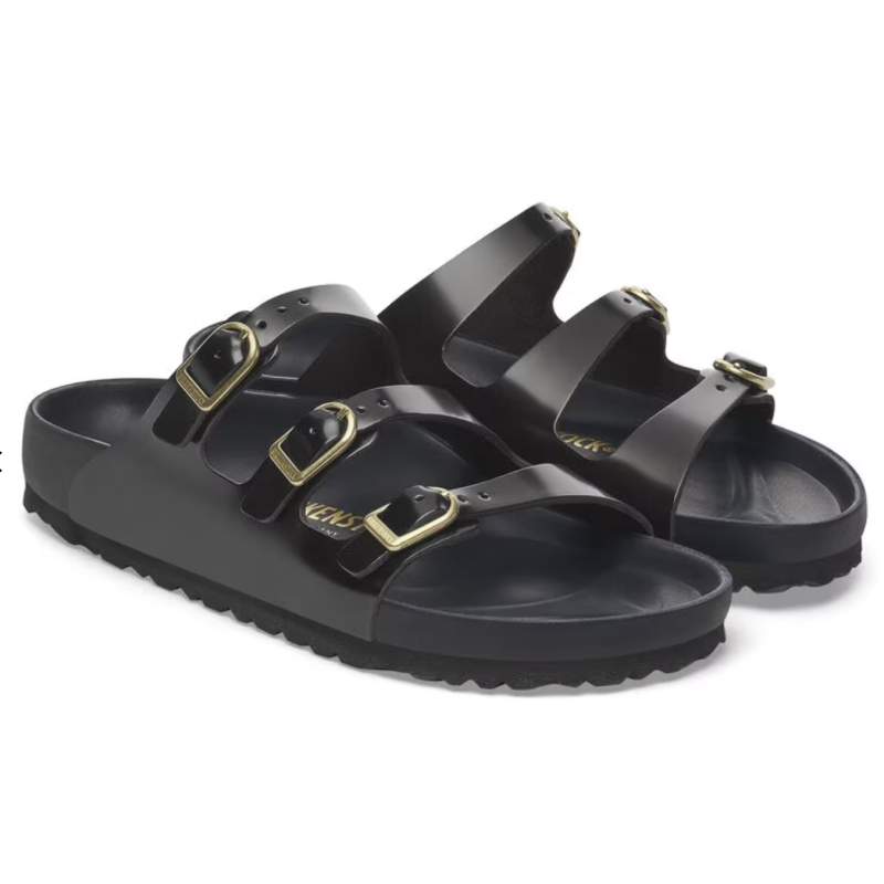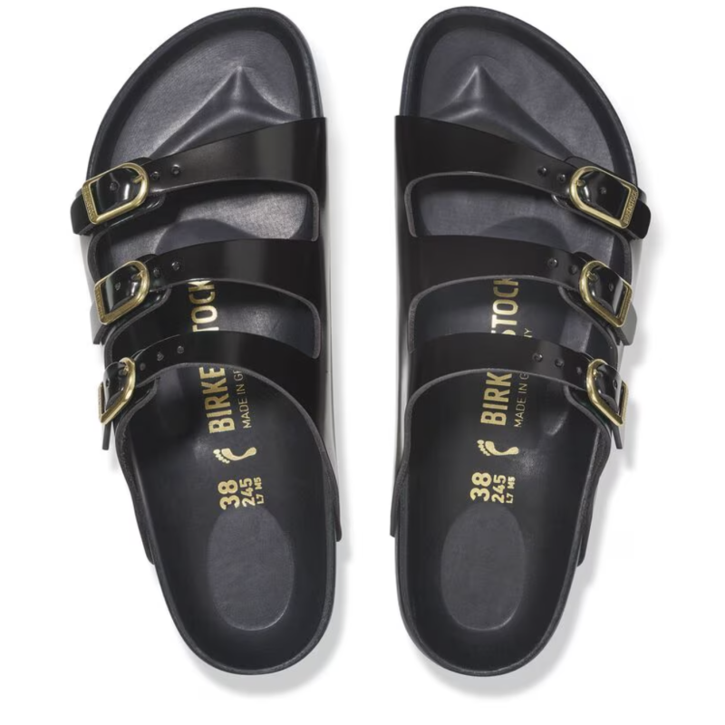 La sandalia Florida de BIRKENSTOCK es perfecta para aquellas personas que pasan mucho tiempo de pie. Este modelo de tres correas ofrece una buena sujeción y una comodidad máxima. La plantilla exquisite está completamente forrada con suave piel Piumato y ofrece una comodidad extraordinaria. Las hebillas en D redondean la apariencia elegante de la sandalia. El material superior está compuesto por piel natural de alta calidad con revestimiento lacado brillante.