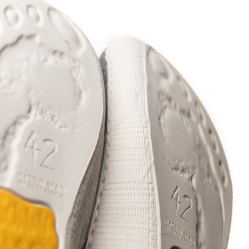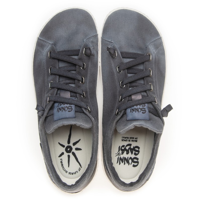 Las zapatillas Sunni Sabbi están elaboradas en España con materiales sostenibles de gran calidad, como el algodón orgánico, el caucho natural y otros materiales reciclados. Tienen la punta redondeada y muy ancha, para una buena comodidad de los dedos y evitar presiones en la parte delantera del pie. Cierre de cordón elástico.
