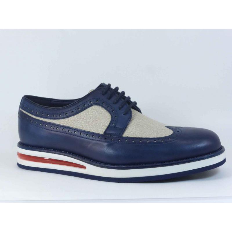 Zapatos de Cordones de Hombre marca Angel Infantes modelo 27121. Zapatos de Pala vega decorado en textil y piel el combinaciones color cuero y azul marino. Tanto este modelo como otros los puede comprar en nuestra tienda On line con envío y devolución gratis.