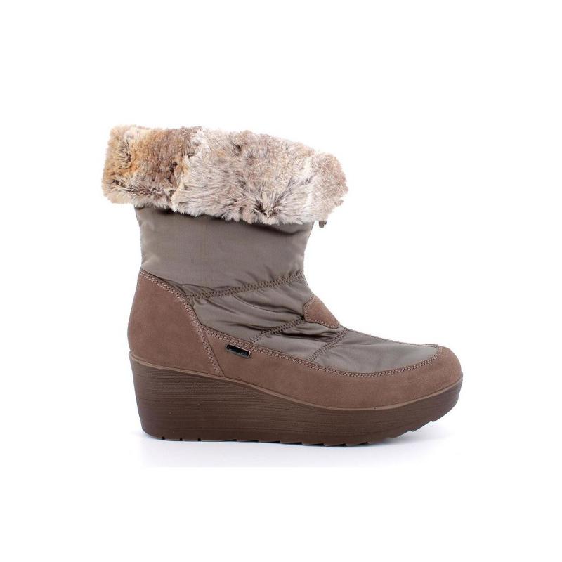 Bota de Mujer de Imac modelo 257219 fabricada en combinación de material textil y piel serraje waterproof (impermeables) con pelo en el interior. Cierre con cremallera en la parte delantera. Plantilla acolchada. Suela de goma antideslizante con cuña de 6 cm. aproximadamente.
