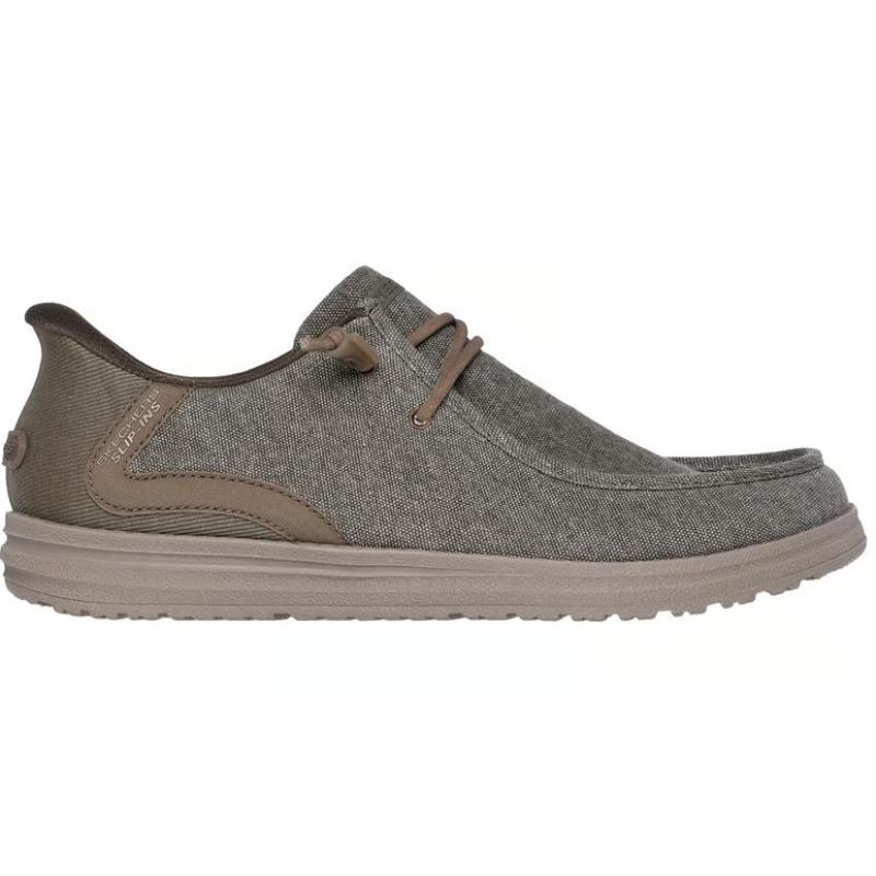 Póntelas y sal a pasear con la Skechers Hands Free Slip-ins® Relaxed Fit™: Melson – Coronado. Diseñado con nuestro sistema exclusivo Heel Pillow™, este modelo con puntera tipo mocasín cuenta con un panel moldeado Skechers Slip-ins® en el talón, una parte superior de lona, cordones decorativos atados y una plantilla Skechers Air-Cooled Memory Foam™ con infusión de carbón.
