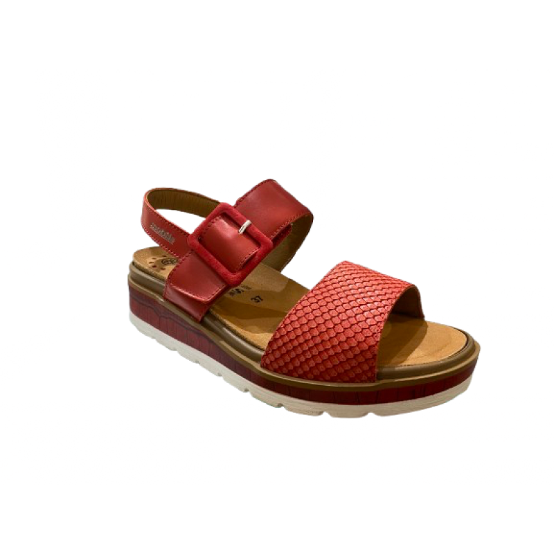 Esta sandalia femenina y de moda es un elemento imprescindible para un verano informal. La plantilla extraíble con tecnología SOFT-AIR y la suela SHOCK-ABSORBER reducen el impacto al mínimo y garantizan una marcha suave y sin fatiga. Su PLANTILLA INTEGRAL ofrece un ajuste incomparable. La correa ajustable de gancho y bucle con hebilla decorativa asegura un ajuste perfecto y comodidad. El forro de cuero proporciona un clima saludable en el interior de la sandalia. Este modelo rojo para mujer está confeccionado en piel de ante en la parte posterior del pie y en piel de efecto metálico con estampado de fantasía en la parte delantera del pie.