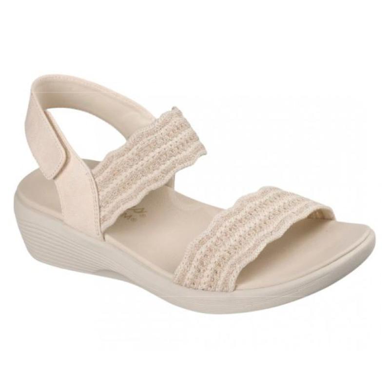 Disfruta de los días soleados con la comodidad y el frescor de Skechers Arya – Sparkling Praise. Diseñada con velcro, esta sandalia presenta una parte superior con correas de knit con grabados y una plantilla con amortiguación Luxe Foam®.
