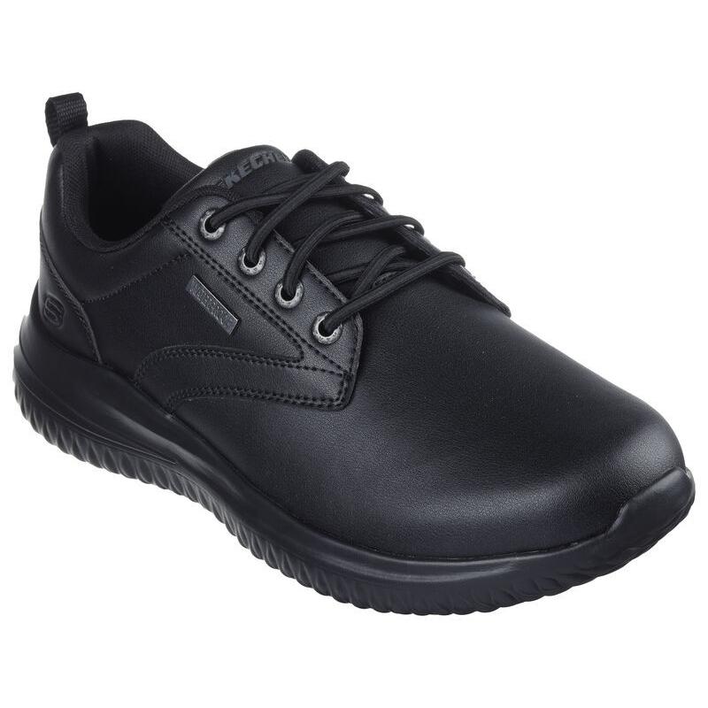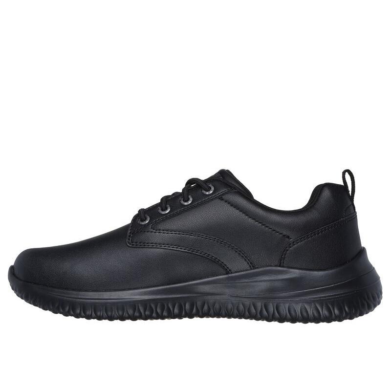 Un versátil modelo favorito que se vuelve aún más cómodo en la zapatilla Skechers Delson 3.0 – Glavine. Este modelo con cordones elásticos presenta una parte superior de piel resistente al agua, una plantilla Skechers Air-Cooled Memory Foam® Classic Fit™ con infusión de carbón y amortiguación Skechers Goga Mat Arch™.
