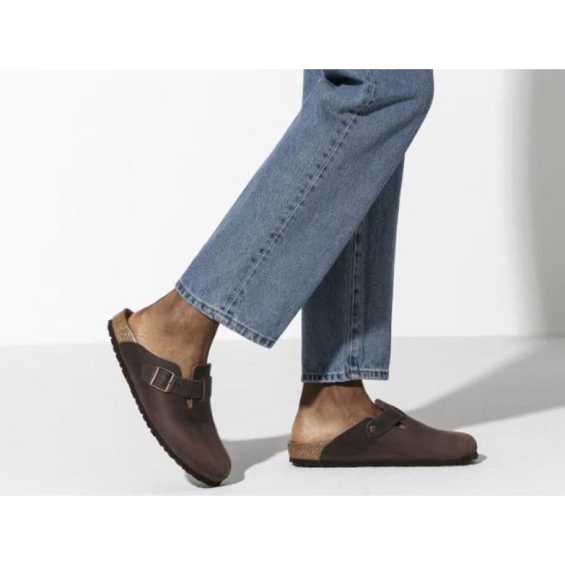 El modelo Boston de BIRKENSTOCK es un auténtico clásico que se puede llevar sin problema durante todo el año. Con su diseño refinado que se puede adaptar individualmente, el Boston disfruta desde hace tiempo de un estatus de leyenda. El material superior es de piel nubuc muy gruesa y engrasada, confeccionada sin costuras en los bordes.